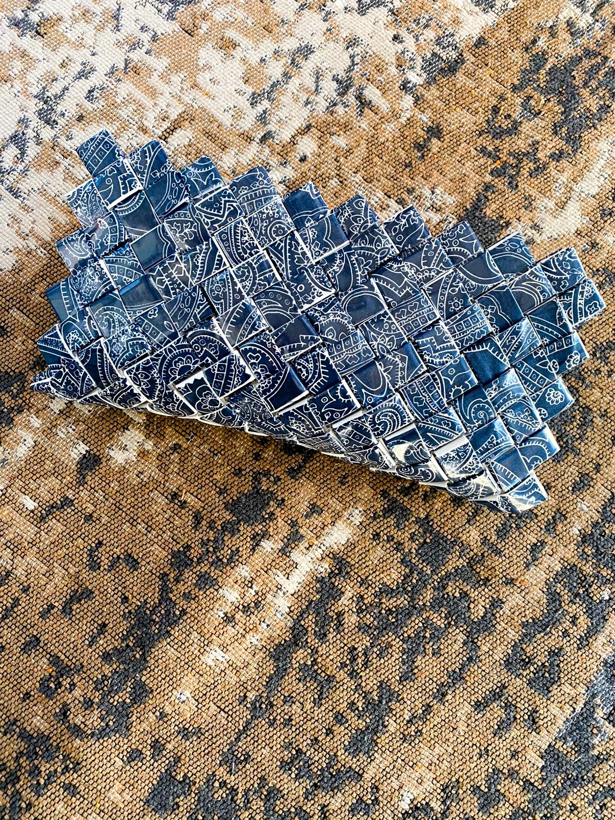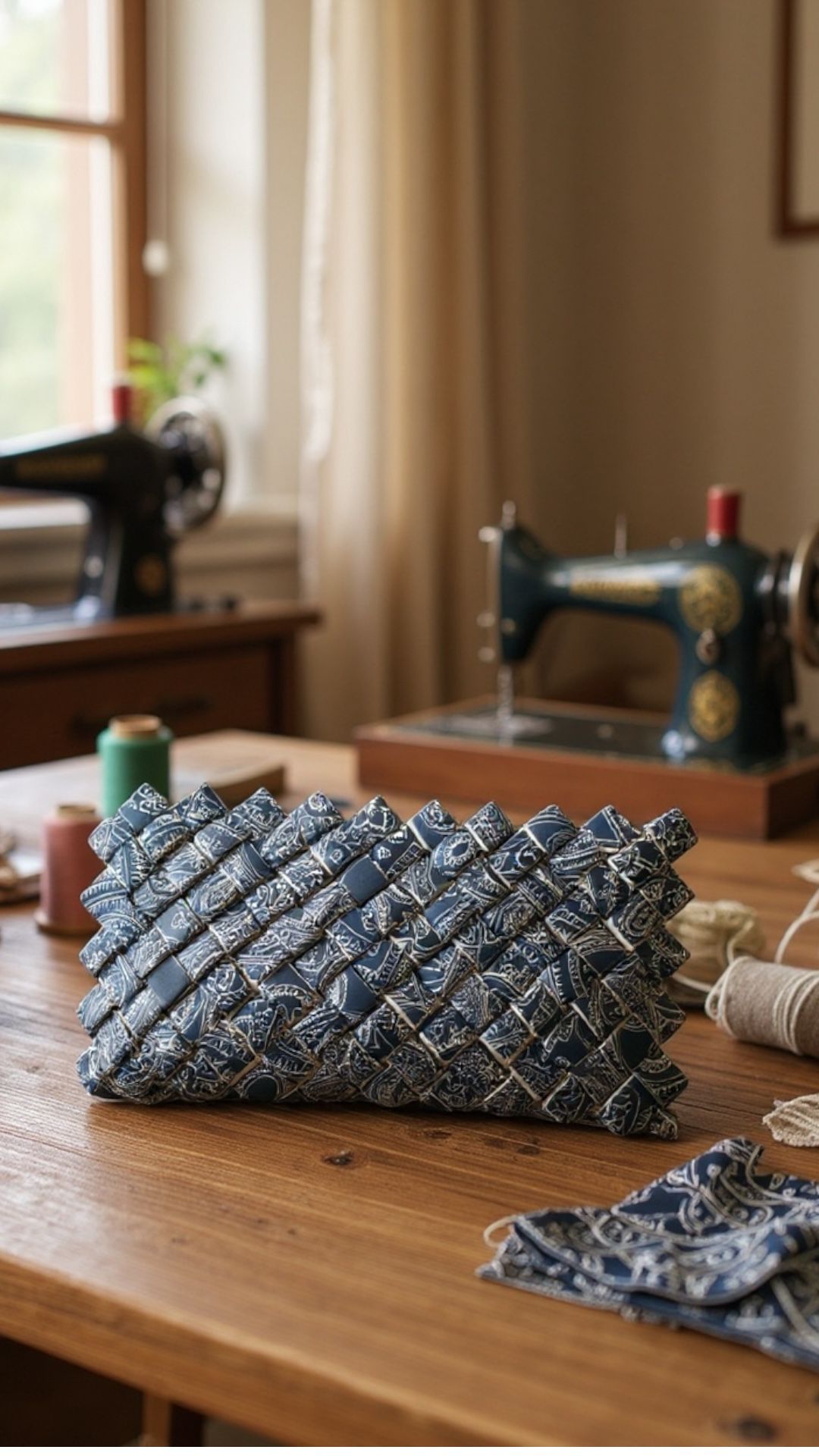 Her biri tek ve özgün…Bu çanta,kağıt ve tekstilin yenilikçi bir formda yeniden tasarlandığı el yapımı bir parça. Geleneksel bir teknikle çağdaş bir görünüm kazanan tasarım sürdürülebilirliği estetikle buluşturuyor.